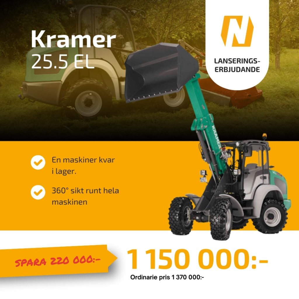 Den fyrhjulsstyrda KL25.5 kombinerar kompakt design med hög smidighet i arbetet. Med en tipplast på 2 500 kg och snabbväxlarfäste som standard får du en flexibel maskin som anpassar sig efter olika uppdrag. Den odelade ramen tillsammans med Kramers beprövade fyrhjulsstyrning ger stabilitet, bra markföljsamhet och säker manövrering även i ojämn terräng.