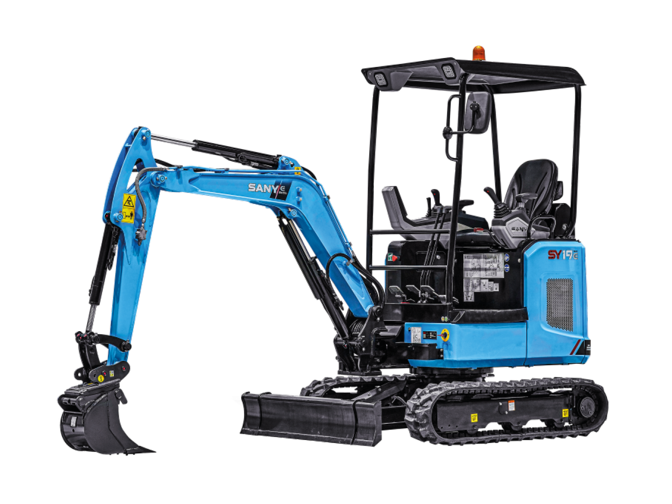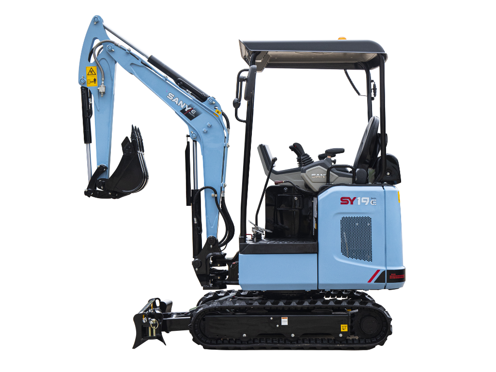 SANY SY19E levereras med 5 års/5 000 timmars garanti samt inbyggd telematik och stöldskydd, vilket ger extra trygghet för entreprenörer och maskinägare.