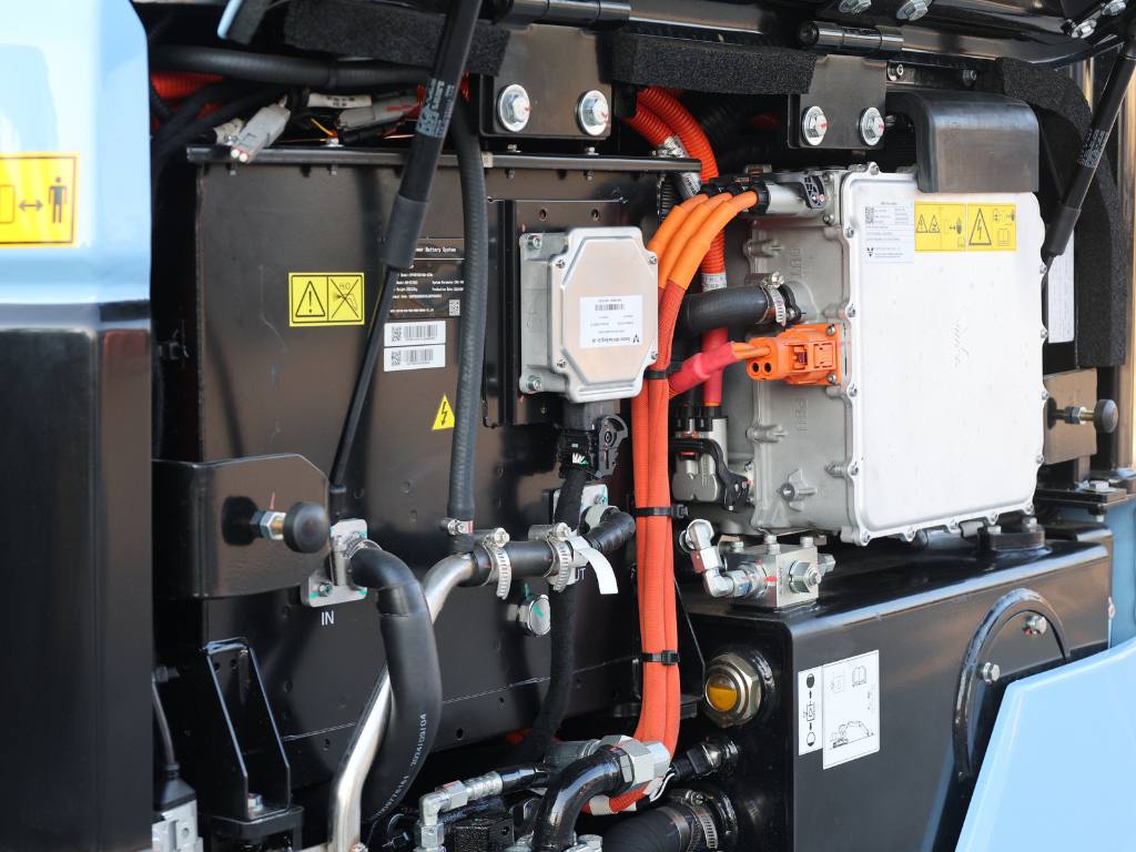 Maskinen kan snabbladdas med DC, laddas via industrikontakt eller via ett vanligt 240 V-uttag, allt via ett och samma ladduttag.